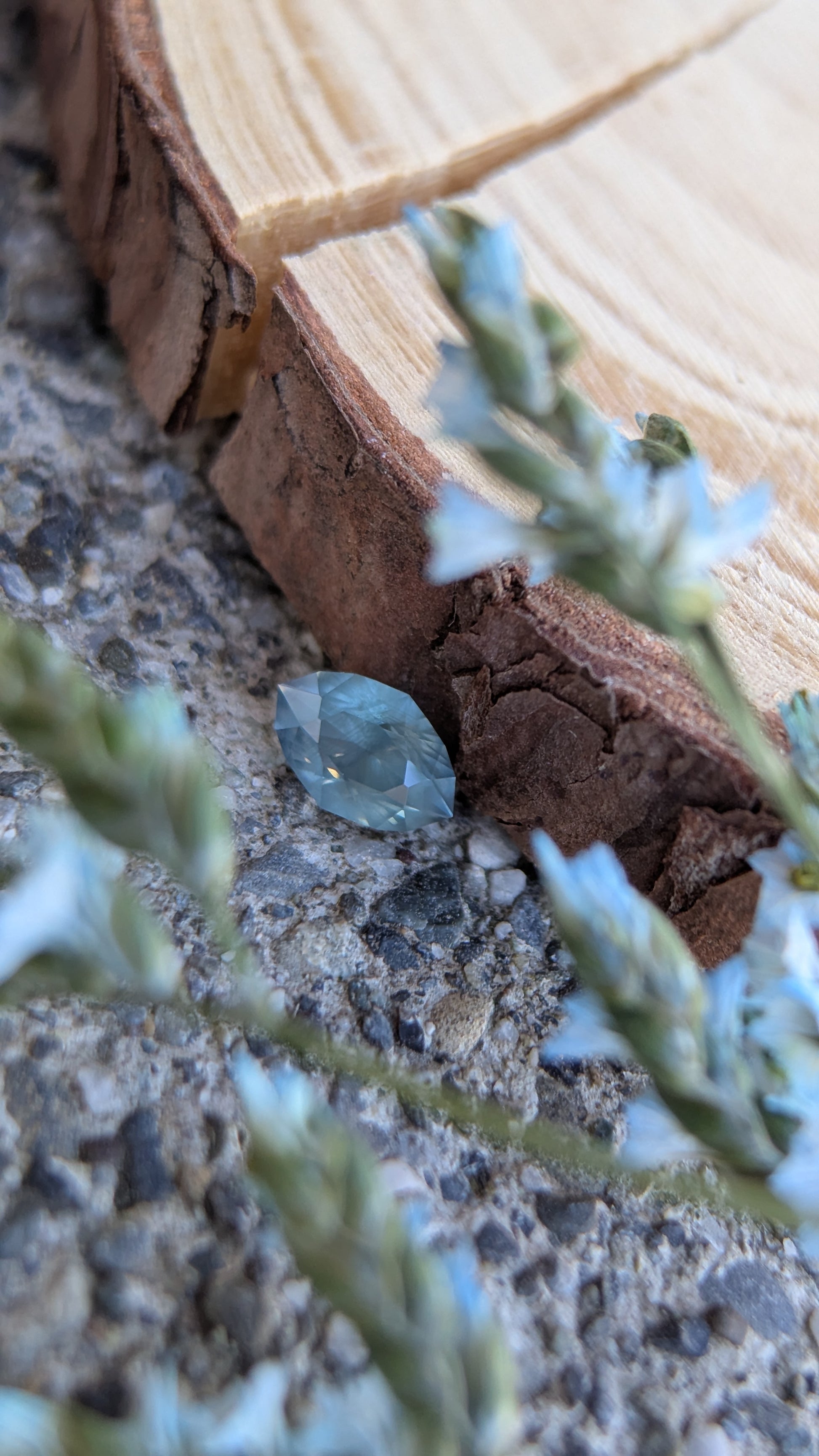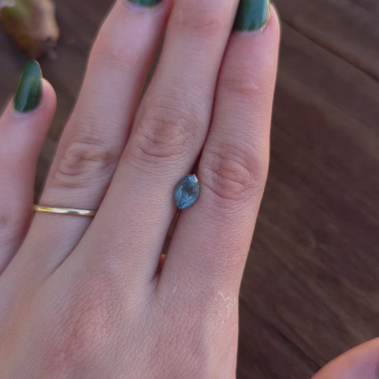 An opalescent 1.66ct Montana Sapphire in a brilliant marquise design.
